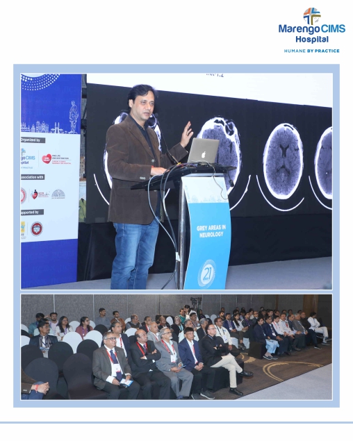 The academic program covered critical and often debated topics in neurology, including grey areas in epilepsy management, acute stroke decision-making, Parkinson’s disease, autoimmune neurological disorders, hyperkinetic disorders, and advanced PET scan applications in autoimmune encephalitis. A highlight of the symposium was the session on Grey Areas in Acute Stroke Management by Dr. Mukesh Sharma, Director – Neurointervention & Stroke, Marengo CIMS Hospital, which sparked meaningful discussion and clinical reflection.